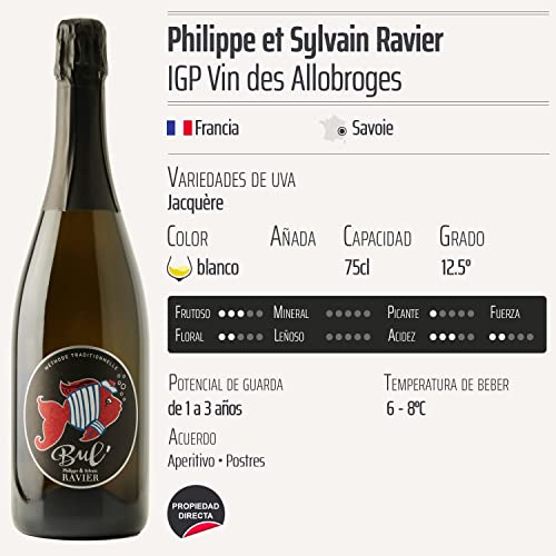 Descubre el Vin des Allobroges Méthode Traditionnelle Bul’ blanco, elaborado por los reconocidos viticultores Philippe et Sylvain Ravier en la hermosa región de Savoie, Francia. Este vino espumoso, que utiliza la variedad de uva Jacquère, ofrece una experiencia única para los amantes del vino que buscan un producto de calidad excepcional. Ideal para celebraciones, cenas especiales o para disfrutar en momentos de relax, este vino IGP es perfecto tanto para aficionados como para conocedores.