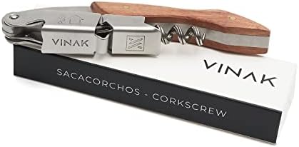 Sacacorchos profesional de doble apoyo de altas prestaciones. Diseño tradicional en madera y acero inoxidable.