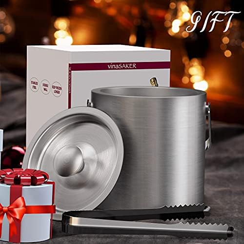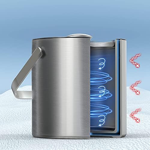 【Durable y buena resistencia】Cubo para hielo isotérmico fabricado en SUS 304 acero inoxidable con asa para poder transportarlo fácilmente. Esta cubitera de acero está equipada con tapa para conservar mejor el frío de los hielos, evitar que entren contaminantes. Esta cubitera es perfecta para usar en habitaciones de hotel, restaurantes o servicios de bebidas.
