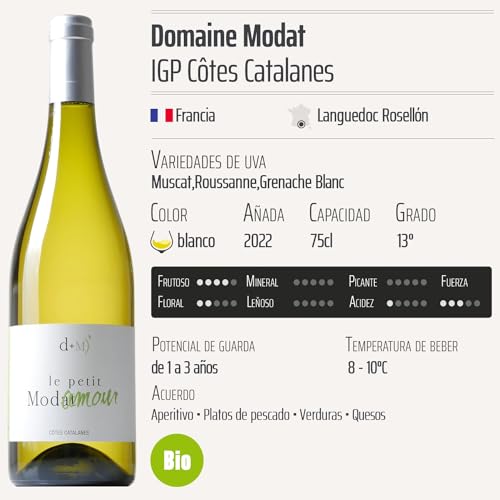 Los amantes del vino han compartido excelentes reseñas sobre el Côtes Catalanes Le Petit ModAt’mour blanco 2022. Un usuario comenta: "Este vino orgánico sorprende por su frescura y calidad. Perfecto para una cena al aire libre". Otro reseña: "Exquisito y fácil de beber, se ha convertido en mi vino blanco favorito para todos los días". En general, los consumidores destacan su excelente relación calidad-precio y el compromiso del Domaine Modat con la sostenibilidad. ¡No esperes más para disfrutar de un placer excepcional en cada copa!