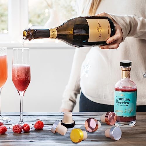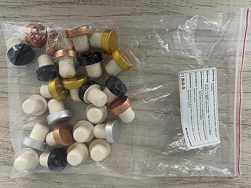 【Lo Que Recibes & Rango de Tamaño Aplicable】nuestro paquete incluye 24 tapones de corcho para botellas de vino en 4 colores (oro, plata, negro y oro rosa). El diámetro del tapón de vino es de 1.85 cm a 1.95 cm (0.7 in a 0.77 in), pueden encajar en las botellas de 375 ml, 500 ml y 750 ml. El diámetro interno de la botella debe ser aproximadamente 0.5 mm menor que el diámetro del corchos, por favor, revisa cuidadosamente el tamaño de tu botella antes de la compra.