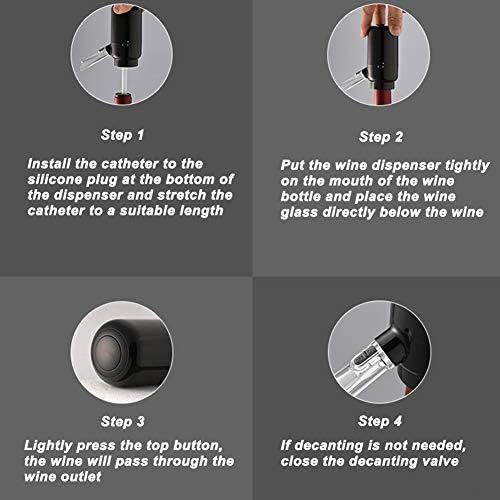 【Portátil y fácil de limpiar】 El producto es de tamaño pequeño, liviano y fácil de transportar. Al igual que el proceso de decantador de vino inteligente para limpiar el aireador de vino, conecte el tubo del aireador de vino, bombeando el agua limpia varias veces, hasta que el agua esté limpia hasta terminar. Funciona con 4 pilas AAA (no incluidas).